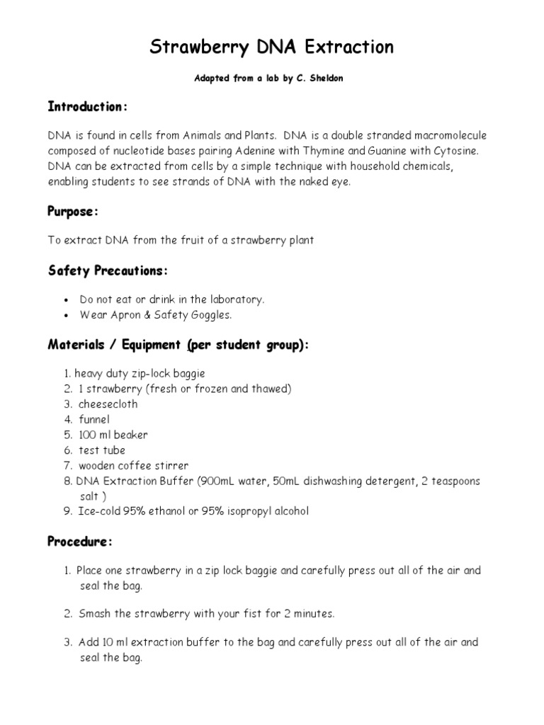 Dna Strawberry Extraction Lab Worksheet : Strawberry Dna Extraction Lab By C Kohn Wuhs And Stacy Fritz - What is the purpose of the salt solution in this experiment?